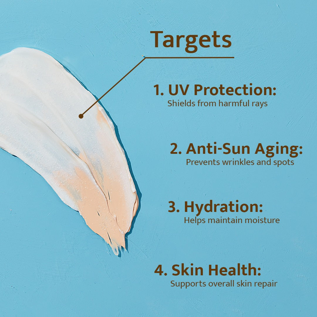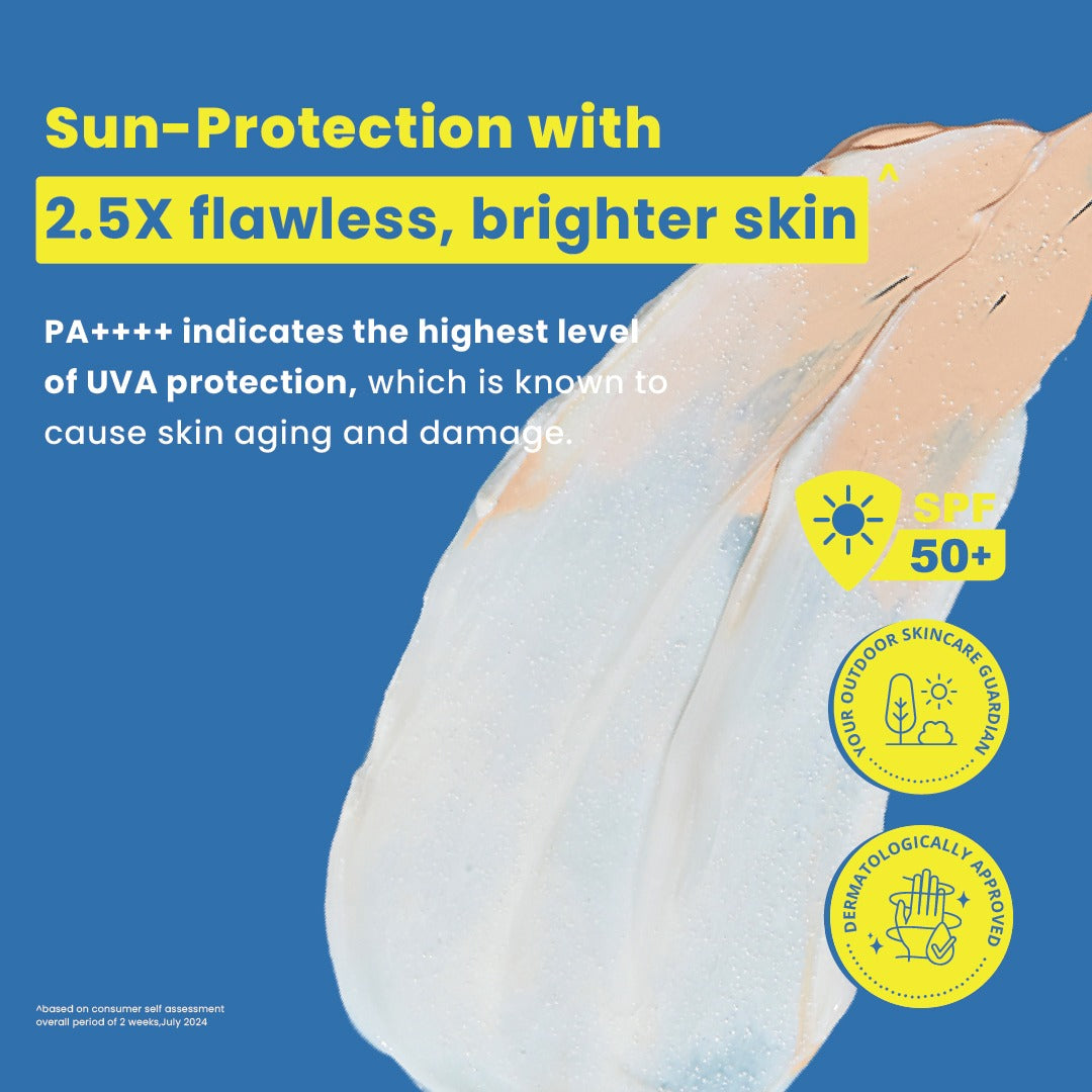 Whether you have oily, dry, or sensitive skin, this formula is made to suit you. It functions as a sunscreen for oily skin with a lightweight, non-comedogenic texture and doubles as a sunscreen for dry skin, delivering hydration without heaviness. Dermatologically tested, it’s also a sunscreen for sensitive skin and an excellent sunscreen for all skin types, making it your everyday essential.